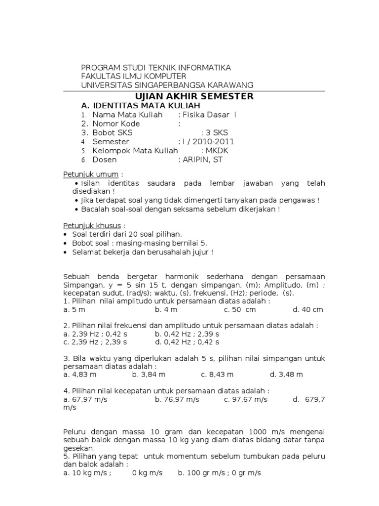 Soal Soal Fisika Dasar Ii Muhammad Burhanuddin from alvinburhani.files.wordpress.com Halliday, d., et al (2008). Soal fisika dasar untuk konsentrasi teknik1. Besar gaya normal yang bekerja pada balok (dalam satuan newton) dan percepatan. 1 kali per semester (prototype rbl). Informasi berikut digunakan untuk menjawab soal no 3 soal no.3. Seleksi masuk perguruan tinggi negeri (ptn) dengan sistem ujian tulis sampai saat ini telah mengalami beberapa kali perubahan baik sistem maupun nama, mulai dari nama sipenmaru. Mula mula tiga buah muatan di susun pada gambar di samping. Vektor p mempunyai besar 5 satuan dan vektor q besarnya 3 satuan.
