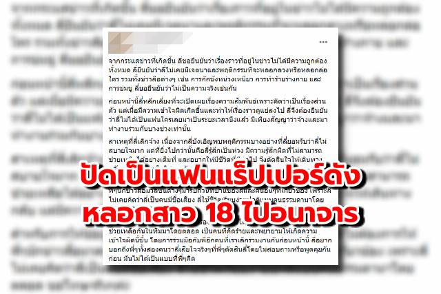 แร็ปเปอร์ขอนแก่น แร็ปเปอร์ 400 ล้านวิว โดนแฉแชต บอกให้ไปช่วยงานดูแล ไปถึงมีแต่เรื่องเซ็กส์ จึงเข้า แจ้งความ แร็ปเปอร์.